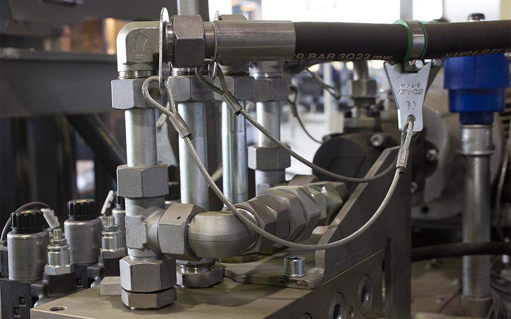 The safety of personnel when operating machinery and equipment is of fundamental importance when designing a hydraulic system. Various international standards, regulations and guidelines stipulate protective measures in certain situations, especially in the field of hydraulics. The risks include hose line whiplash and the escape of fluids such as hydraulic oil or other media under high pressure.
