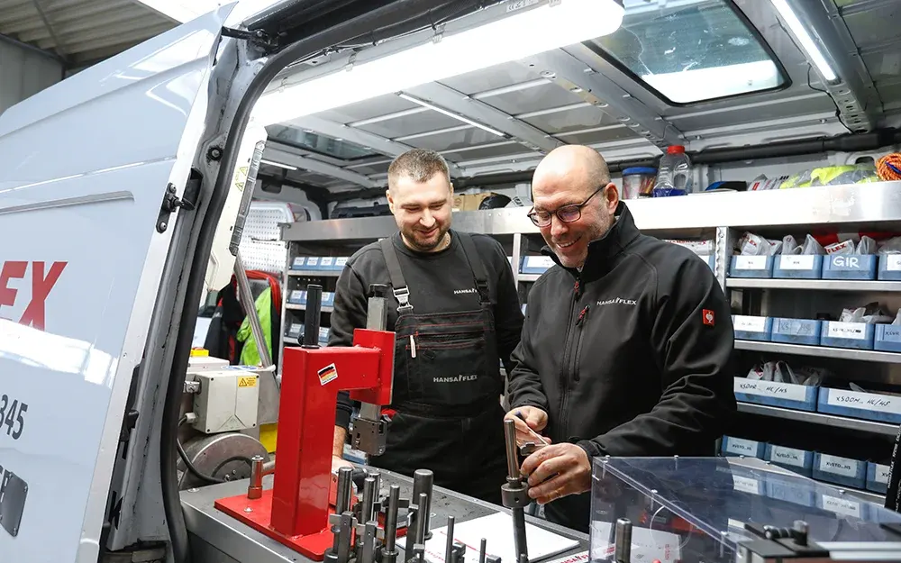 Continual improvement is the basic principle at HANSA‑FLEX, and the results show both in the detail and in the bigger picture. Two examples: we have modernised our service fleet and now use additional and, for the moment, parallel rechargeable battery packs instead of the earlier underfloor generators to supply electrical power to the mobile workshops. This means we can now work in low-noise and emissions-sensitive environments. In the Industrial Service, we are always looking to see what specialist skills we need to offer in order to best serve our customers. We are now in the position to undertake very complex and challenging projects, for example, hose line and pipeline installation in particularly hot environments. Sounds banal, but it is not. It makes me really proud to see how we have all further developed as a team.
