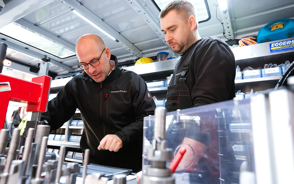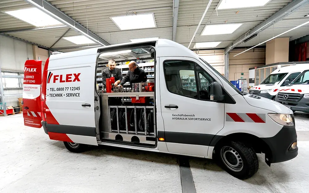 There is no more suitable place for an interview with Lelio Arlt than a vehicle from the Mobile Rapid Hydraulic Service. Not least because the qualified production and automation engineer has led the Mobile Service division at HANSA‑FLEX since the middle of the year. In the interview, the Austrian explains why HANSA‑FLEX has reorganised the division, why the Mobile Service is much more than just “fast hose” and what goals he is aiming to achieve with his team.