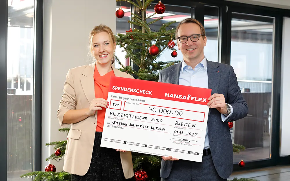 Seit einigen Jahren verzichtet HANSA‑FLEX auf Werbegeschenke für Kunden und spendet stattdessen für den guten Zweck. Wie bereits in den letzten Jahren, werden 2025 Projekte der Stiftung “Solidarität Ukraine” unterstützt.