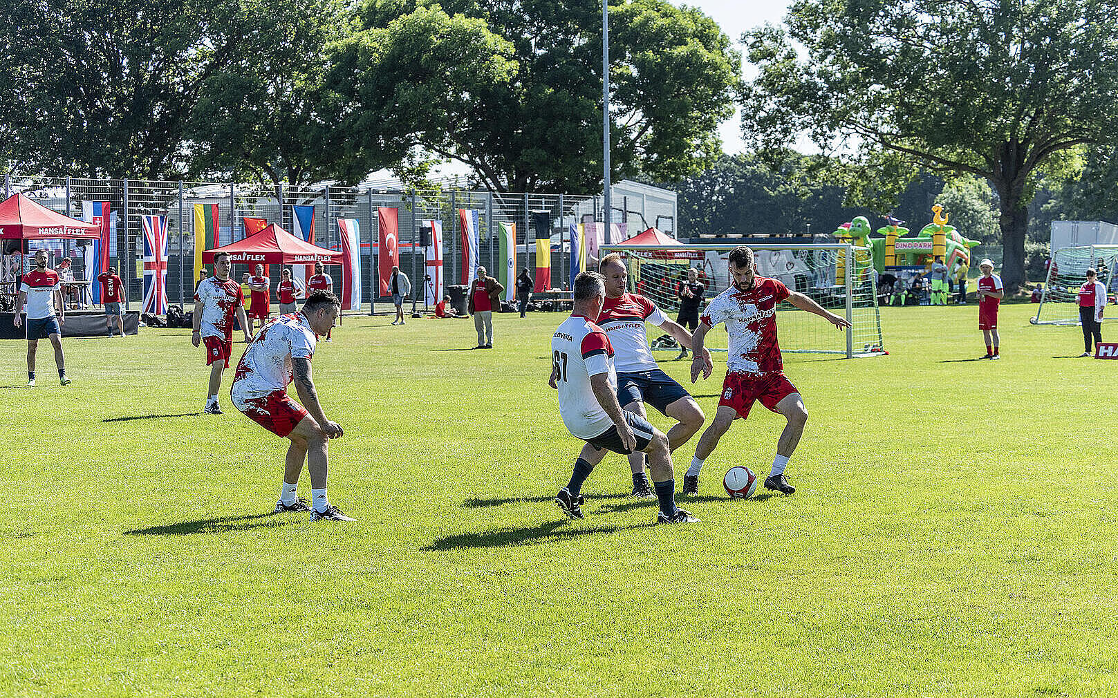 Mit über 800 Gästen fand bei strahlendem Sonnenschein die HANSA-FLEX Fußball-WM statt. 33 Teams aus 22 Nationen spielten um den Sieg. Für jedes geschossene Tor wird Geld gespendet.